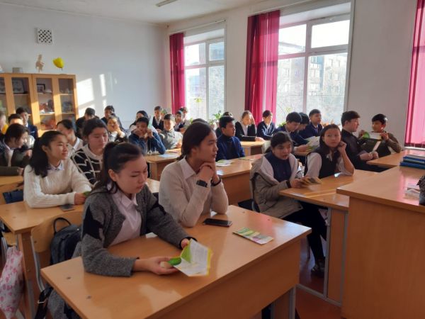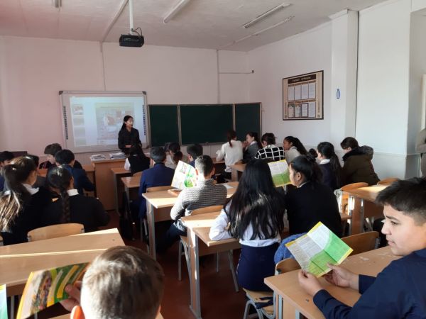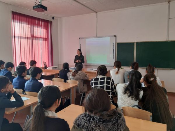 Кәсіптік бейімделу мақсатында "Болашақ" Қарағанды жоғарғы колледжінің ағылшын тілі пәнінің оқытушысы Габдуллина Б.А 9-10-11 сынып оқушыларына дәріс өткізді.
