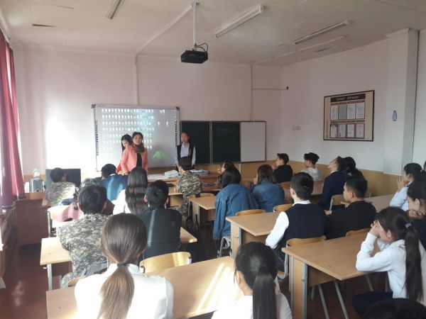Ашық есік күніне орай Абай Құнанбаев атындағы Саран гуманитарлық-техникалық колледжінің мұғалімі Гульзат Муратовнамен және студенттерімен кездесу.