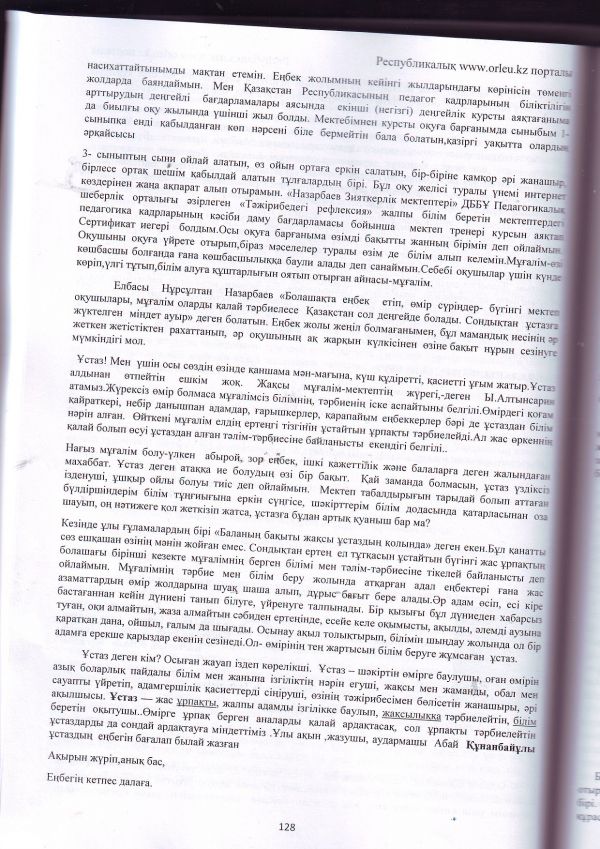Қазақстандық орта мектептерде тәрбие мен білім беру: ізденіс және даму перспективалары (әдістемелік оқу құралы) VI жинақ Алматы 2016.
