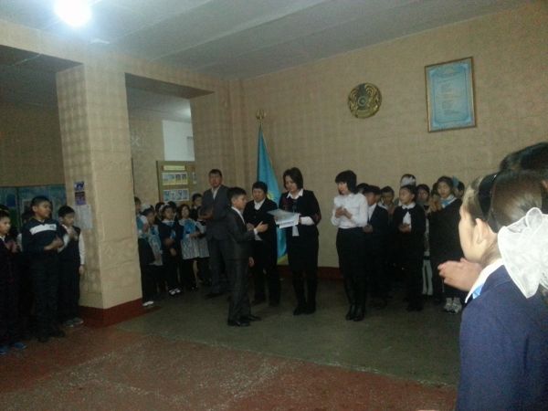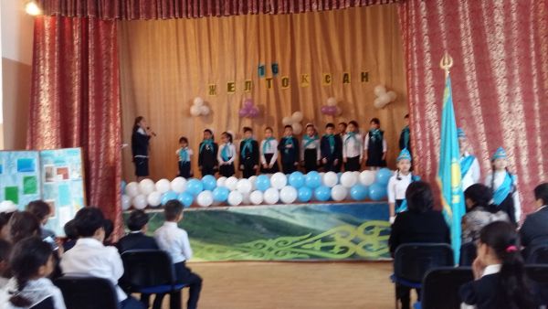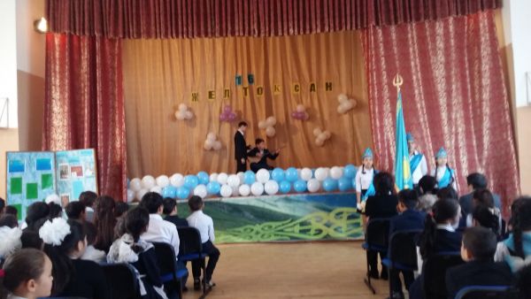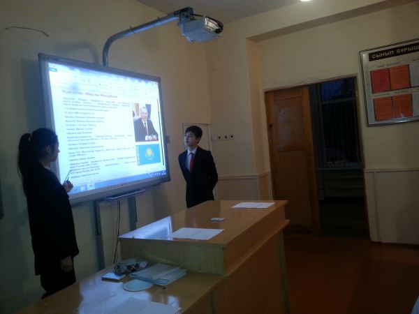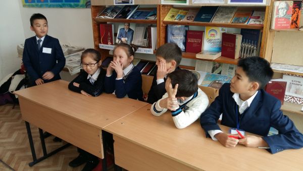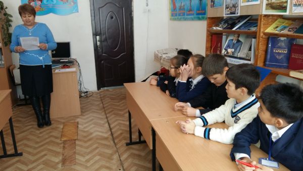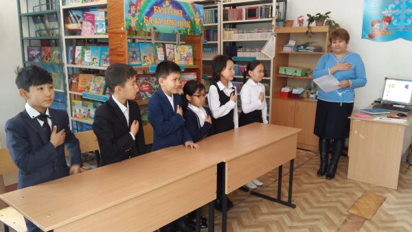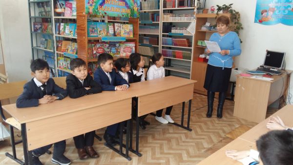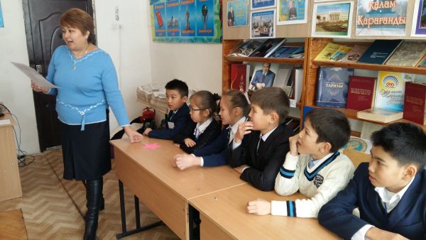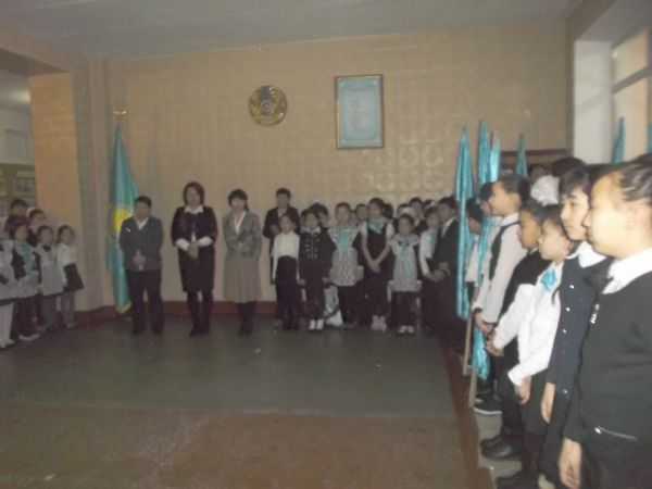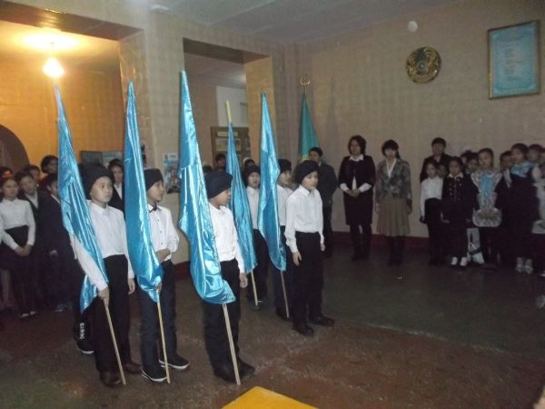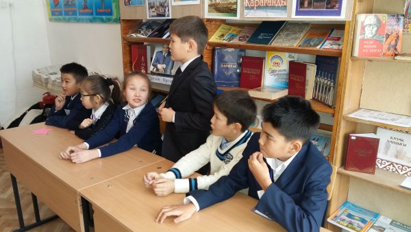 №4 Негізгі орта мектебінің кітапханасында 30.11.2015 ж. 1 желтоқсан «Қазақстан Ресбуликасының Тұңғыш Президент күніне» арналған 5 «А» мен 5 «Ә» сынып оқушылары ар…