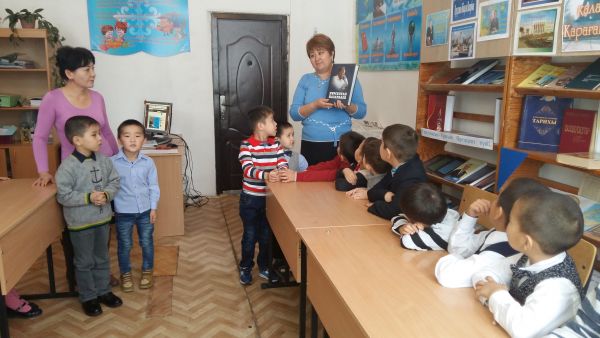 №4 Негізгі орта мектебінің кітапханасында 30.11.2015 ж. 1 желтоқсан «Қазақстан Ресбуликасының Тұңғыш Президент күніне» арналған мектепалды даярлық тобына «Менің Тұңғыш Президентім&…