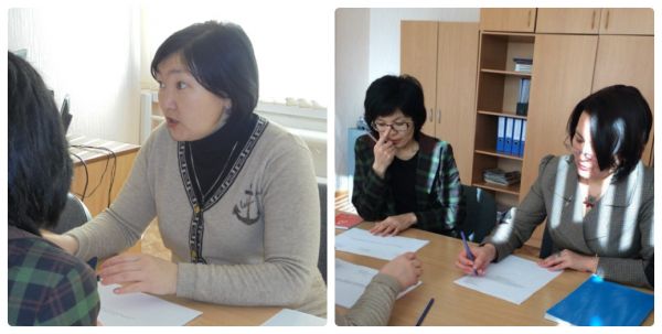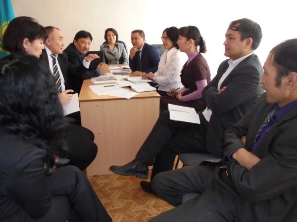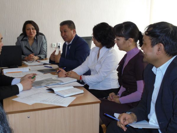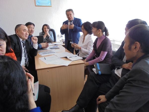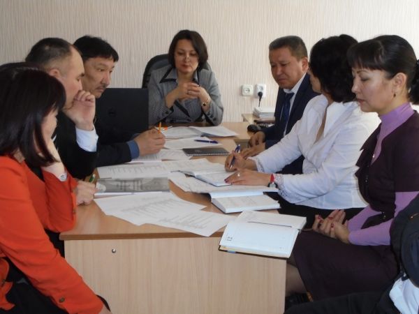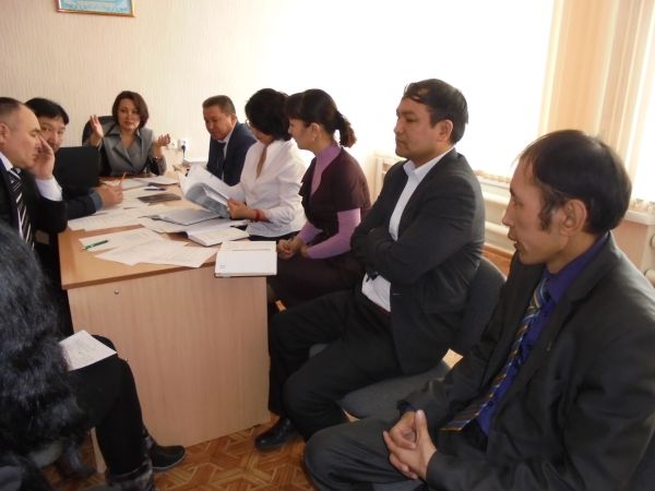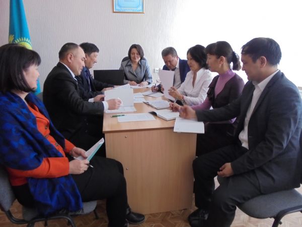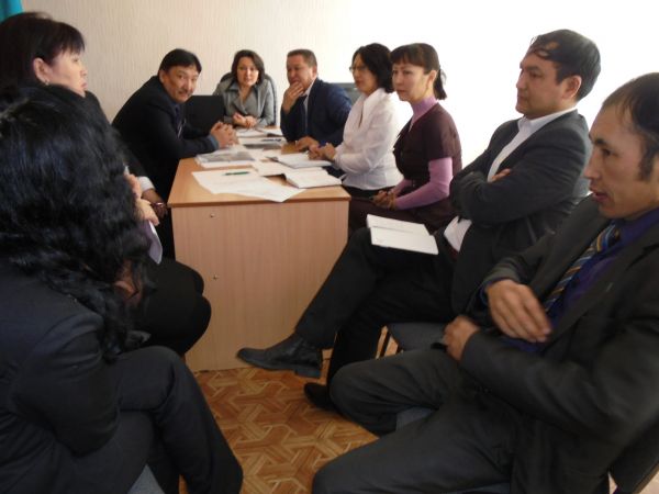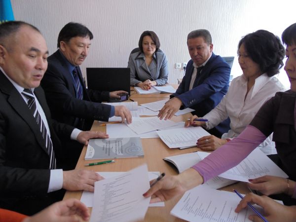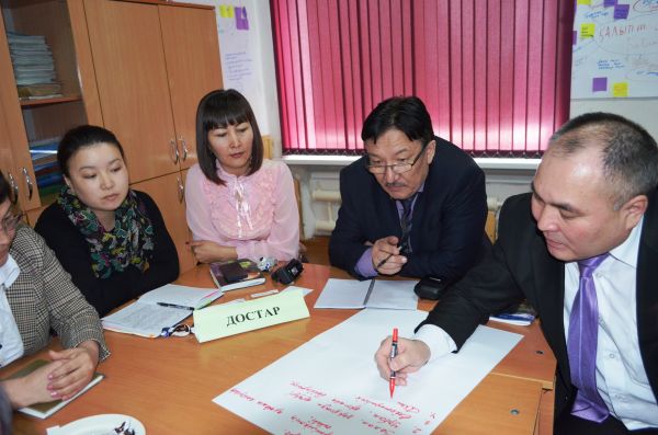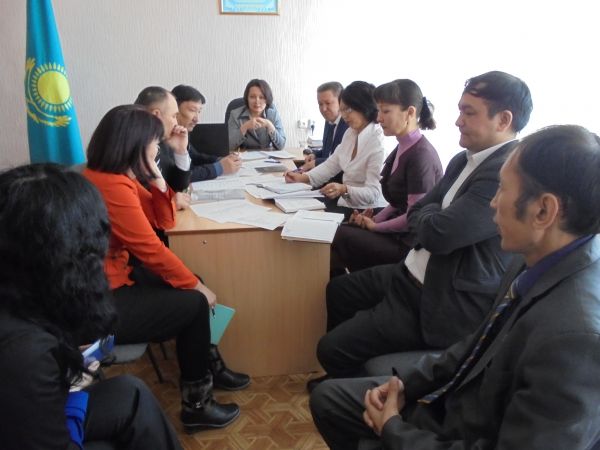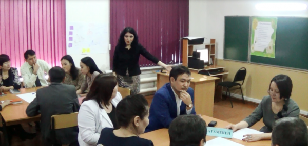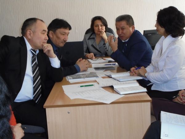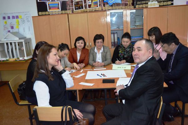 03.03.2015 жылы №4 негізгі орта мектепте ҚР жалпы білім беретін мектептер педагогтерінің біліктілігін арттыру курстарының бағдарламасының үшінші деңгей тыңдаушылары тәжірибенің өту барысын талдау үстінде