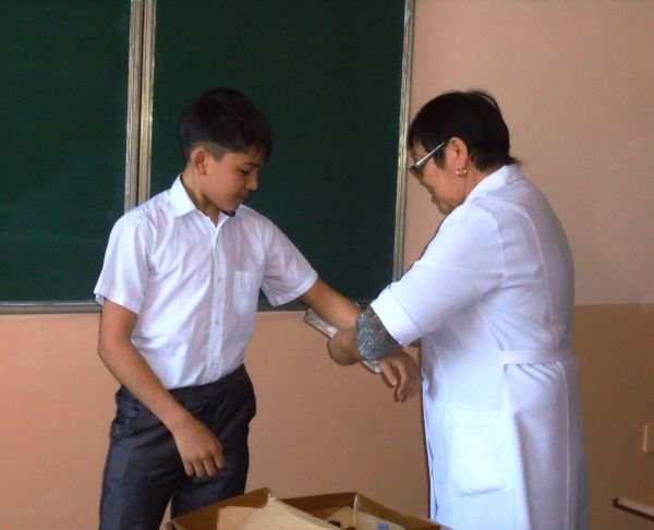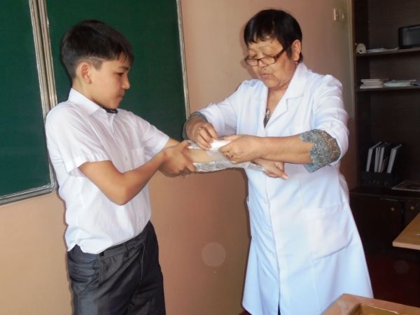 02.03.2015 жылы №4 негізгі орта мектепте Азаматтық қорғаныс күніне байланысты 7-8 сыныптарға мектебіміздің медбикесі Кангельдина Света апай оқушыларға алғашқы медициналық көмек&n…