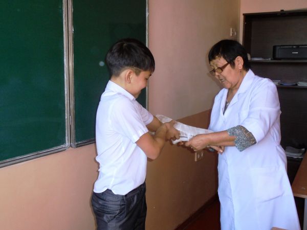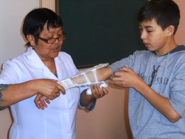 02.03.2015 жылы №4 негізгі орта мектепте Азаматтық қорғаныс күніне байланысты 7-8 сыныптарға мектебіміздің медбикесі Кангельдина Света апай оқушыларға алғашқы медициналық көмек көрсету жолдарын көрсетті.