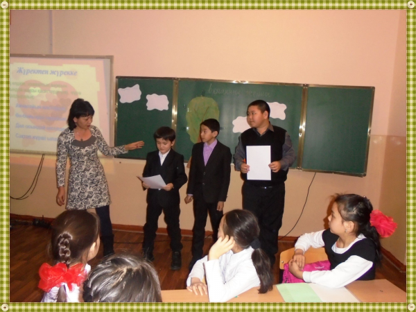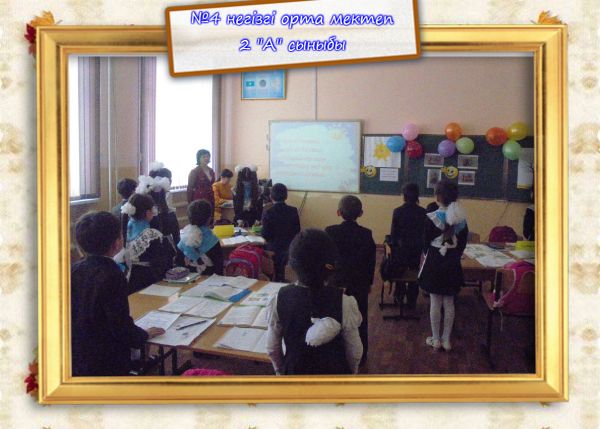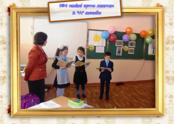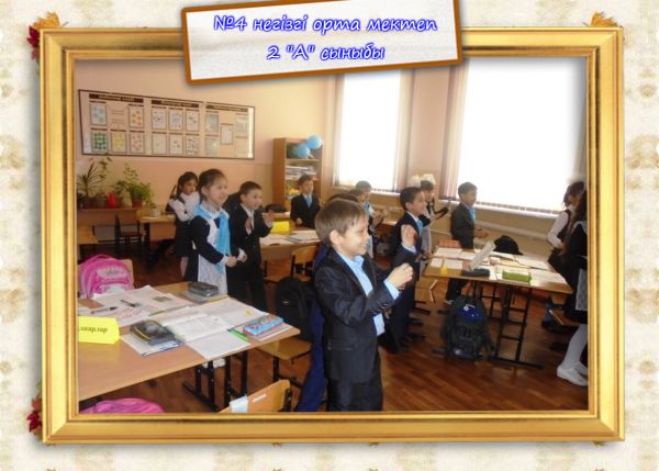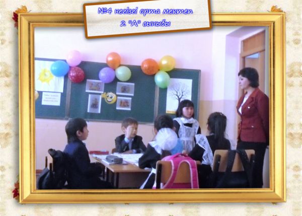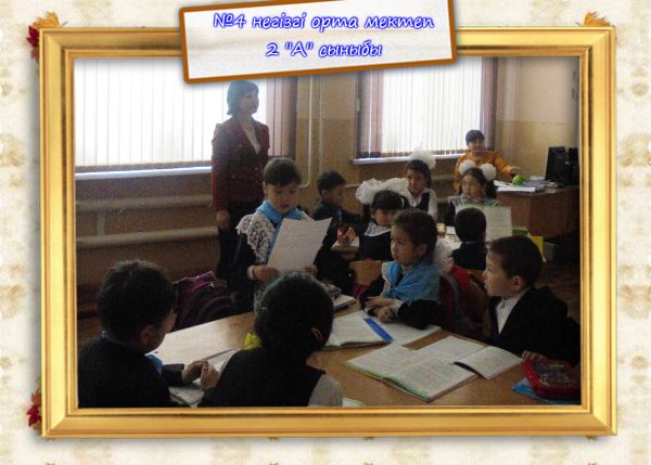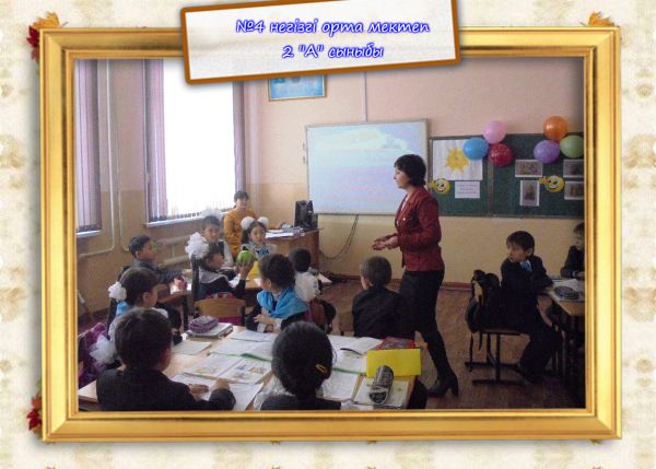 10.02.2015 жылы №4 негізгі орта мектепте бастауыш сынып мұғалімі Хоршат Назгүл 2 "А" сыныбына "Еңбек - бәрін жеңбек" тақырыбында ашық сабақ өткізді.