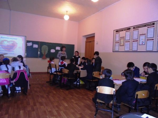 №4 негізгі орта мектепте 12.02.2015 жылы өзін-өзі тану пәнінің мұғалімі Альмагамбетова Жумабике Кабыловна "Адам еңбекпен шыңдалады" тақырыбында ашық сабақ өткізді.