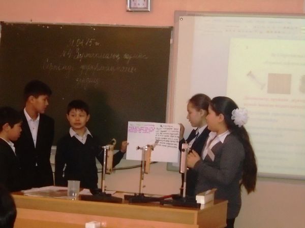24.01.2015 жылы №4 негізгі орта мектебінде физика пәнінің мұғалімі Жанаргуль Амантаевна «Серпімді деформацияны зерделеу» тақырыбында 7 «Ә» сынып оқушыларымен ашық с…