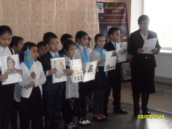№4 негізгі орта мектепте бастауыш сыныптар арасында 3 "Ә" сынып оқушылары және сынып жетекшісі Жуманбаева Гулжансара Азанбаевна жетекшілігімен Ұлы Отан соғысының 70 жылдығына арналған әдеби монтаж өткізді.