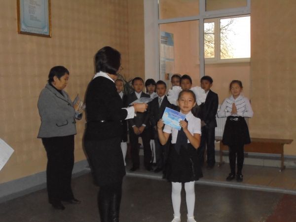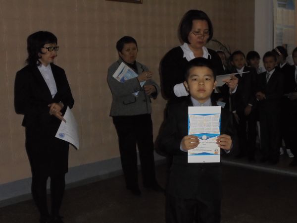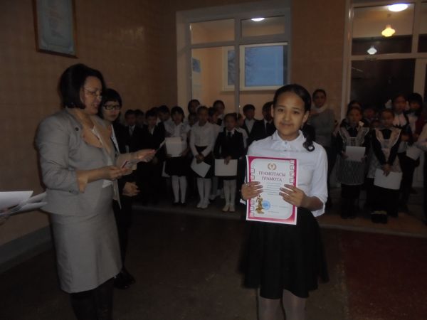 17.11.2014 №4 НОМ-те жиын өтті.  Саптық жиында каникул кезінде өткен Республикалық олимпиадаға қатысқан оқушылар марапатталды.