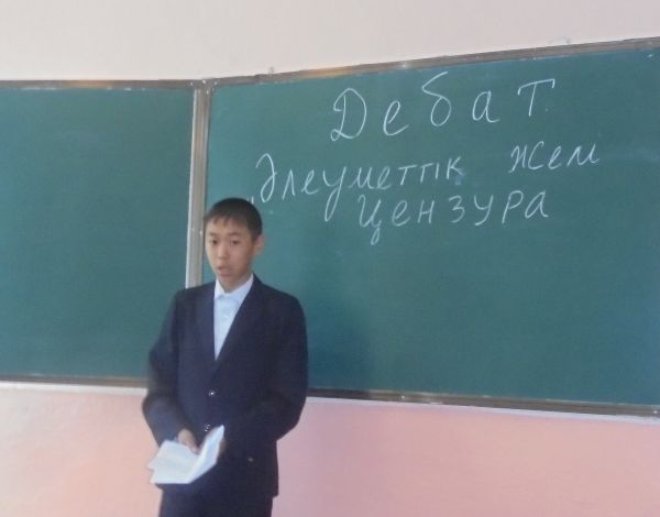 04.11.2014 №4 НОМ-інде тарих пәнінің мұғалімі Асқар Сатыбалдыұлымен бірге "Әлеуметтік желіде цензура уәкілеттілігі" тақырыбында 9-сыныптар арасында дебат өтті.