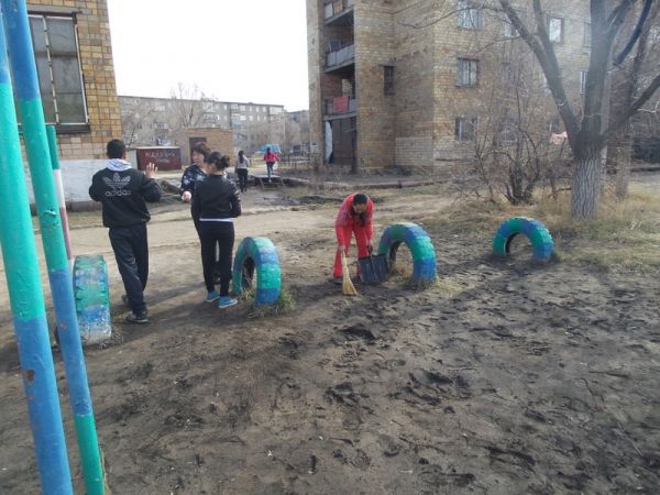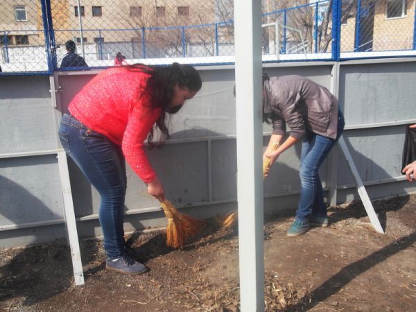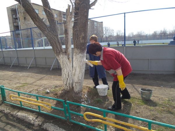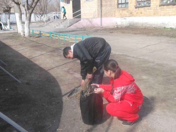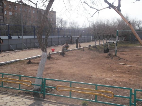 19.04.14 №4НОМ бойынша қалалық сенбілік аясында мектеп ауласы мен мектепке жақын орналасқан жерлерді мектеп ұстаздары, шаруашылық жұмыскерлер және 5 – 9 сыныптар оқушыларының көмегімен ұйымдас…