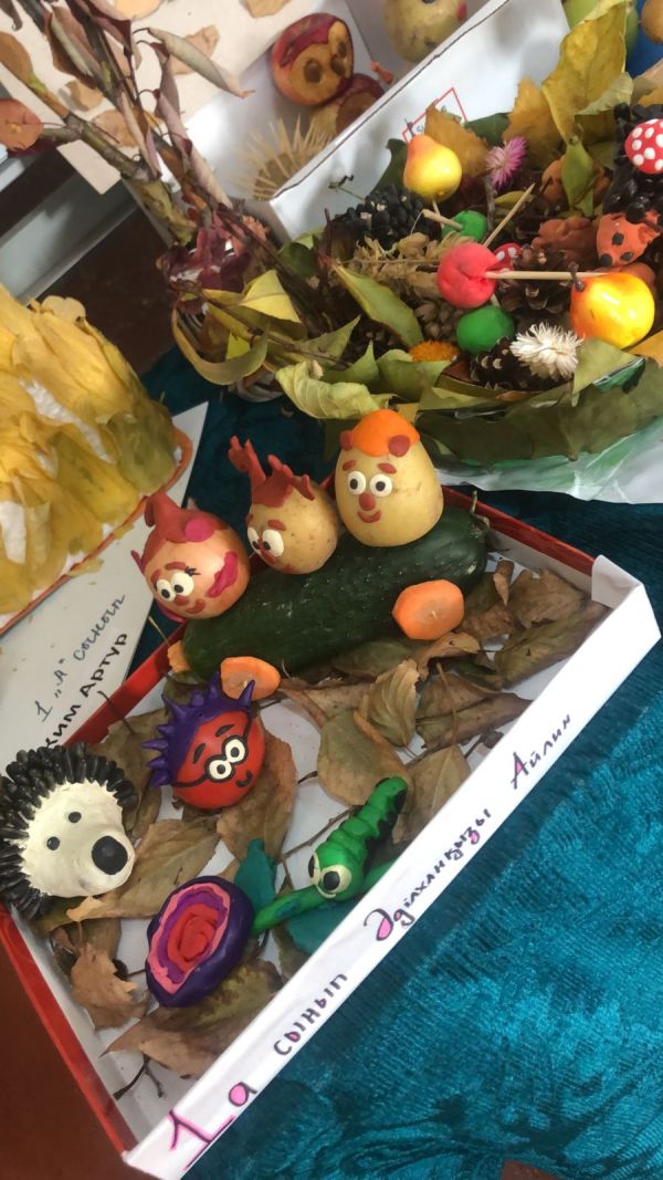 11-16 қазан аралығында эстетикалық пән бірлестігі апталығының жұмыс жоспары аясында 1”А” сынып оқушыларының “Сиқыршы күз” атты көкөністерден жасалған бұйымдары. Сынып жетек…