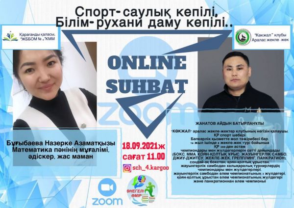 "Өнегелі өмір" жобасы аясында №4 ЖББМ математика пәні мұғалімі Бұғыбаева Назерке Азаматқызының "Көкжал" аралас жекпе-жектер клубының негізін қалаушы Жанатов Айдын Батырланұлымен…