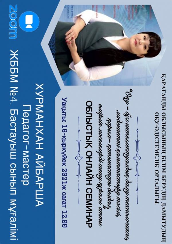 №4 ЖББМ Бастауыш сынып мұғалімі, педагог-мастер Хурманхан Айбарша "Оқу-бұл интеллектуалдық даму технологиясы, мәдениетті қалыптастыру тәсілі, қарым-қатынастағы делдал, өмірлік мәселелерді шешу…