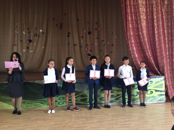 За занятое 3 место в рамках номинации "Игра на народных инструментах" ученица 9 класса Смагулова Лаура и номинации "Ақындар мүшәйрасы" ученица 8 класса Айтбай Ұлжалғас были удост…