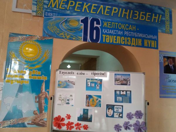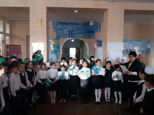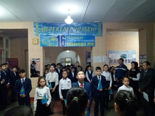 Мақсаты: оқушыларға тәуелсіздіктің қадірі мен қасиетін ұғындыру. Мерекелік шарада мектеп басшысы Кулбулатова Қ.С ұстаздар мен оқушыларды құттықтады. Оқушылар ән мен жырдан шашу шашты.