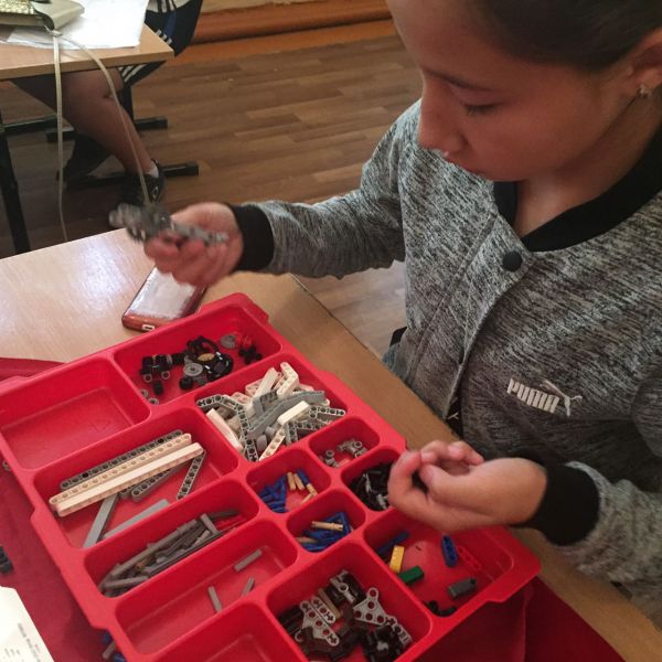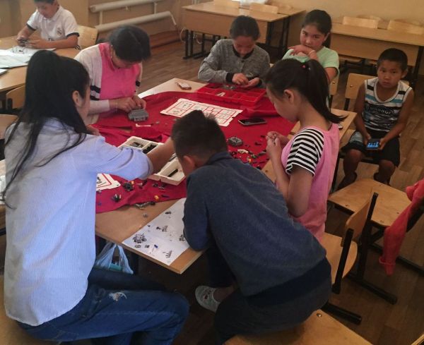 "Жас дарын" профильдік лагерінде "робототехника" бағыты бойынша оқушылар құрастырғыш бөлшектермен танысуда