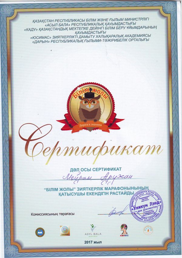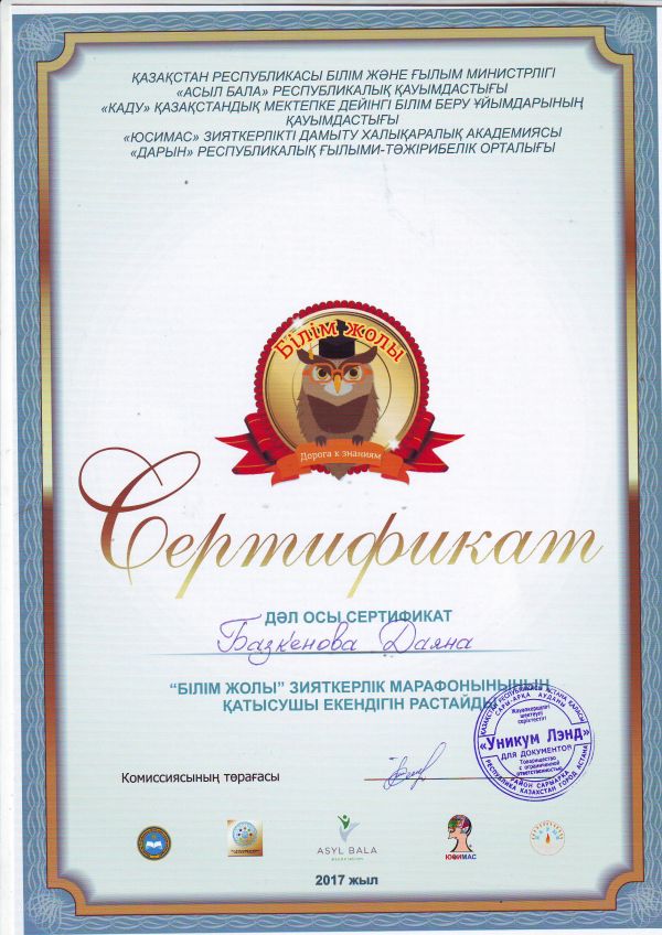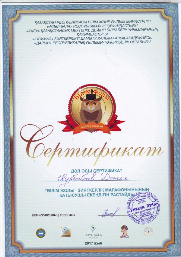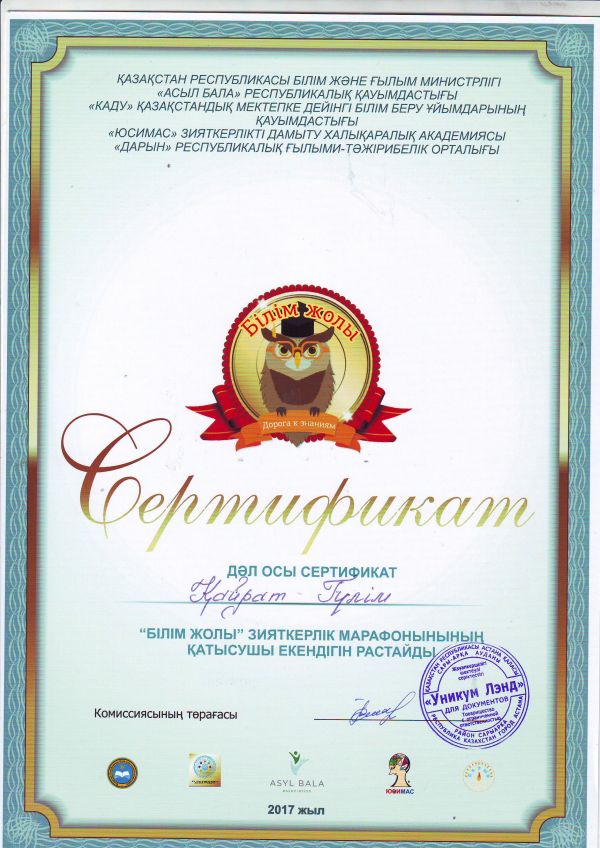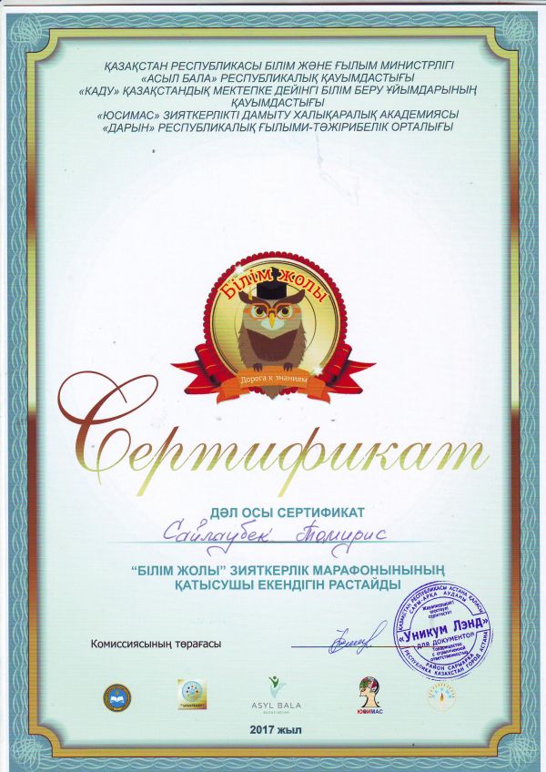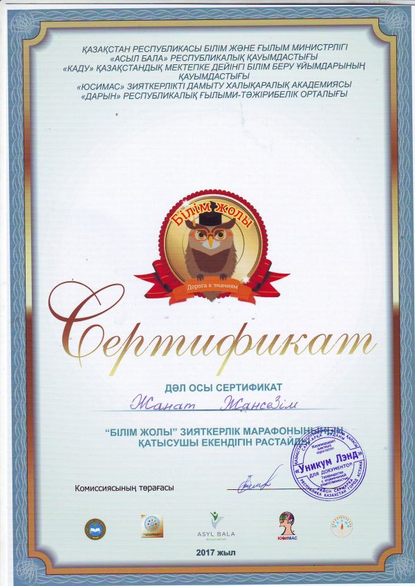 Экспо-2017 Халықаралық көрмесіне арналған «Мастер» табиғи және тастама материалдардан жасалған киімдер үлгісі конкурсына қатысқаны үшін технология пәнінің мұғалімі Альжанова Д.У. ж…