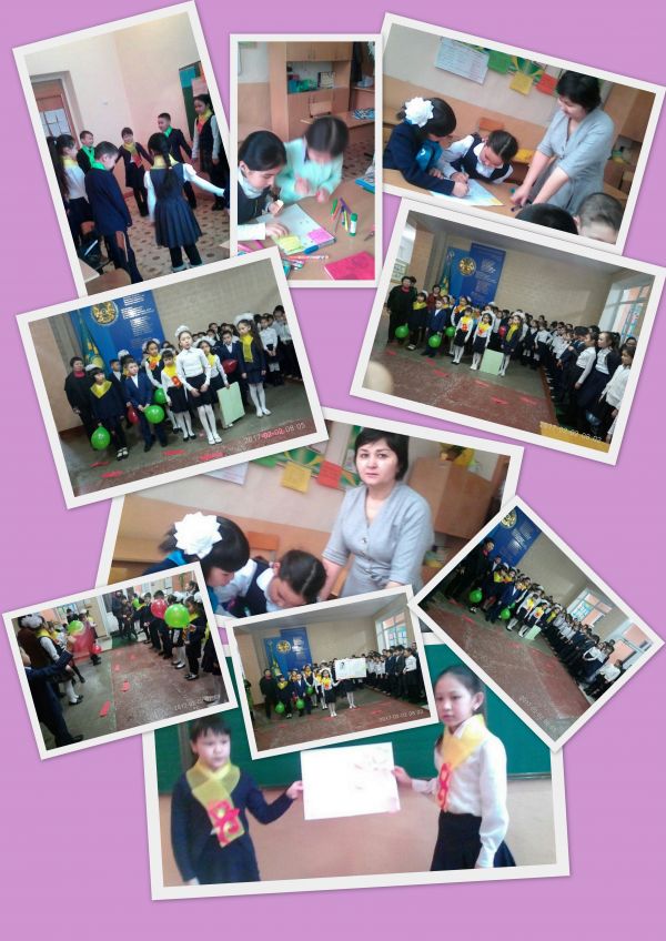 Таңертеңгі сабаққа келісімен, оқушылар мен ұстаздар қауымы түрлі-түсті ұсақ жүрекшелерге:  қызыл – мейірімділік,  сүйіспеншілік;  сары-адалдық,  қайырымдылық;  жасыл &…