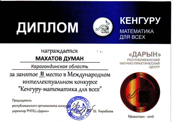 «Кенгуру-математика для всех» халықаралық интеллектуалды конкурсынан №4 негізгі орта мектептің төрт оқушысы ІІ орынды иеленді. Олар Махатов Думан, Тлеубай Диас, Жаксылыкова Сымбат, Пушта…