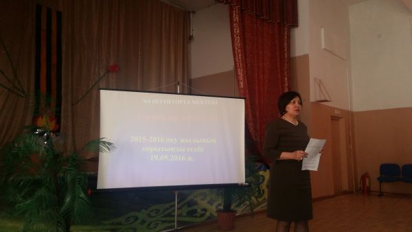 Бүгін мектебімізде 2015-2016 оқу жылының қызығы мен қиыншылығы мол, әр оқу жылы қайталанбас тарихқа толы мектептің мерекесі, оқушылардың сыныптан - сыныпқа көшіп, асыға күткен жазғы демалысқа шығары…