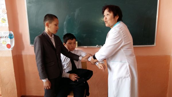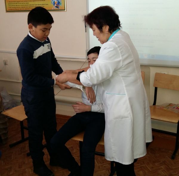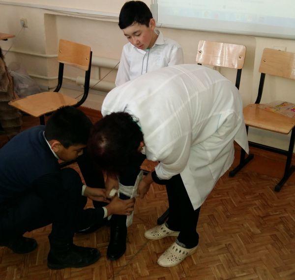 02.03.2016 ж. мектебімізде "Азаматтық қорғаныс" күніне арналған іс-шаралар өтті. Мектеп медбикесі: 6а, 7а сыныптарына медициналық алғашқы көмек көрсету туралы лекция оқып, іс жүзінде көрсе…