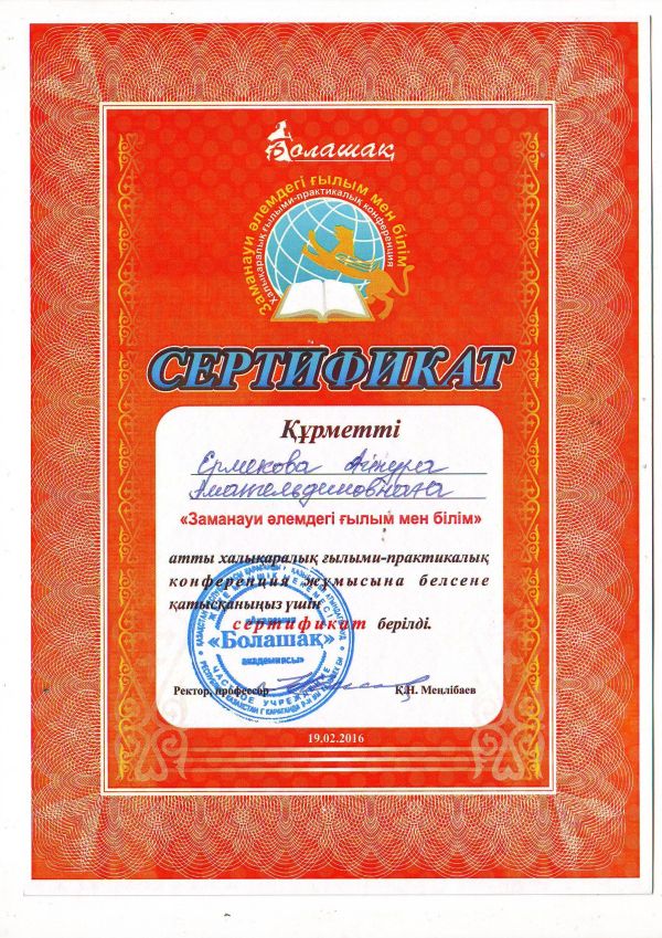 «Заманауи әлемдегі ғылым мен білім» атты халықаралық ғылыми-практикалық конференция материалдар жинағына «Бастауыш сынып оқушыларының сөйлеу тілін қалыптастыру ерекшеліктері»…