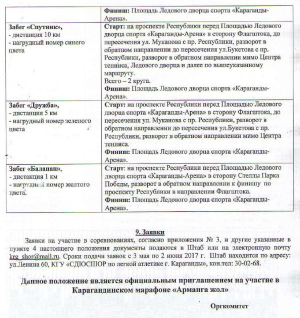 Положение о проведении Карагандинского марафона "Арманға жол"
