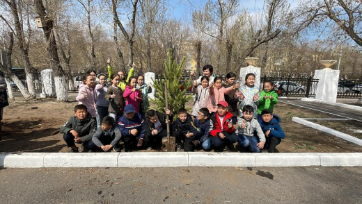 "Жасыл Қазақстан" атты экологиялық сауаттылық апталығы аясында 4Ғ, 11В сынып  оқушылары сынып жетекшілері Қ.Ы.Ырысбек , Т.М.Бекованың  басқаруымен гимназия ауласында қылқан жапыр…