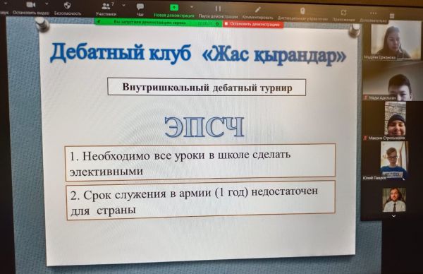 27.01.2022 жылы «№ 3 гимназия» КММ-де 8-10 сынып оқушылары арасында «Мектептегі барлық сабақтарды факультативтік түрде өткізу керек», «БӨБОӘК» тақырыптарында мект…