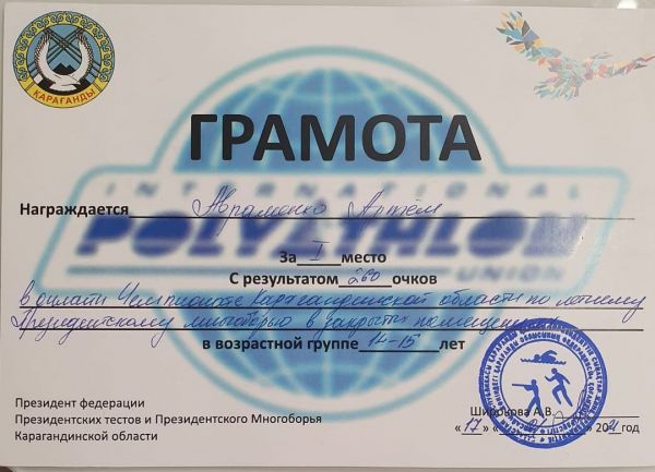 17 января 2021 года завершился Чемпионат Карагандинской области по летнему многоборью в закрытых помещениях. Соревнования включали 4 дисциплины: стрельба, спринт, плавание, бег на выносливость.