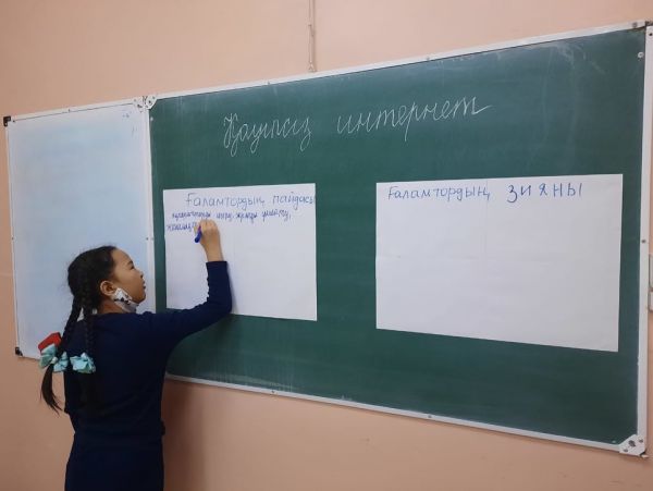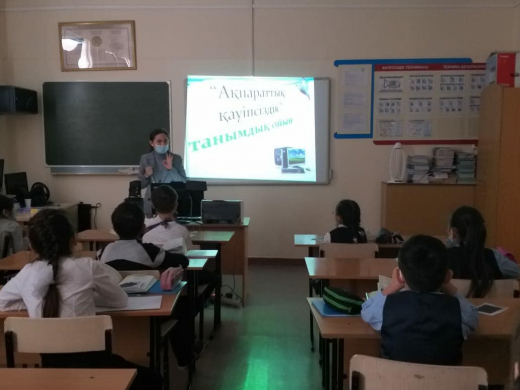 4Ә сынып оқушыларымен "Қауіпсіз ғаламтор" атты танымдық сабақ өтті. Сабақта оқушылар ғаламтордың пайдасы мен зияны туралы мәліметтер алып, өз ойларын ортаға салды.