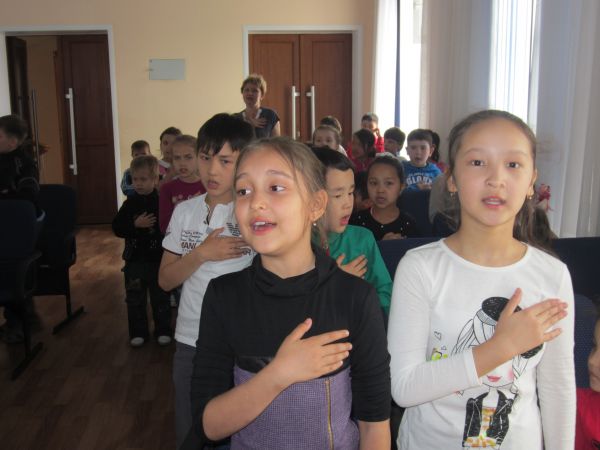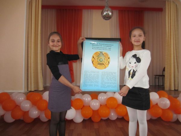 В гимназии провели игру-викторину к празднику символов РК. Ребята пели гимн, отвечали на вопросы викторины по символике Республики Казахстан, где показали хорошие знания.