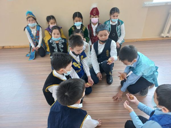 Учащиеся 2 "Ә" класса КГУ "Гимназия №3"приняли участие в конкурсе национальной игры «Асық ату» на праздничном мероприятии "Қош келдін, әз Наурыз".