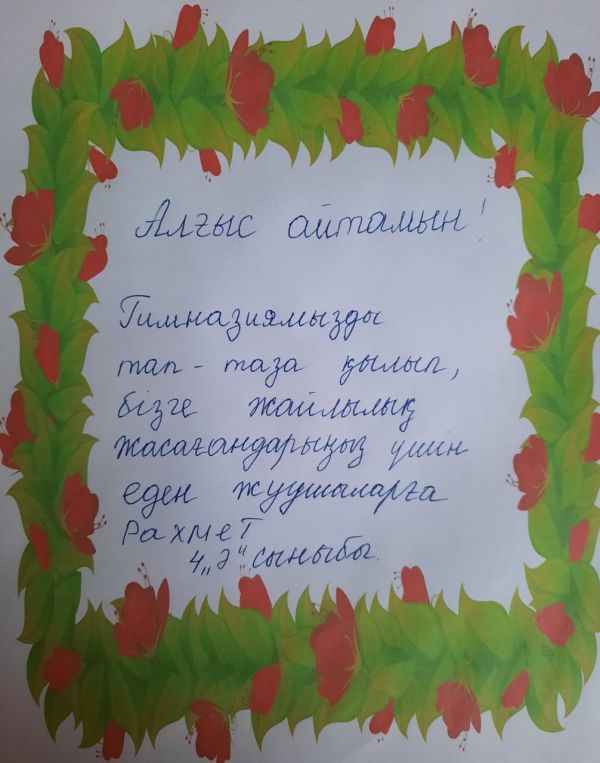 Гимназия оқушылары мен ата-аналары гимназияның ең батыл, еңбекқор, төзімді қызметкерлеріне ыстық лебіздері мен алғыстарын жаудыруда.