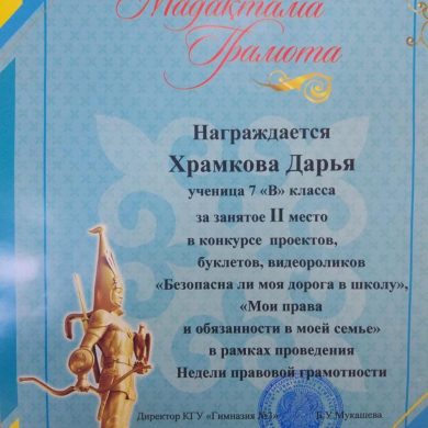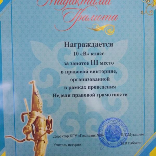 В рамках недели правовой грамотности в КГУ "Гимназии №3", учителем истории Рябокон И.В и Маликовой Эльмирой Амангельдыевной -