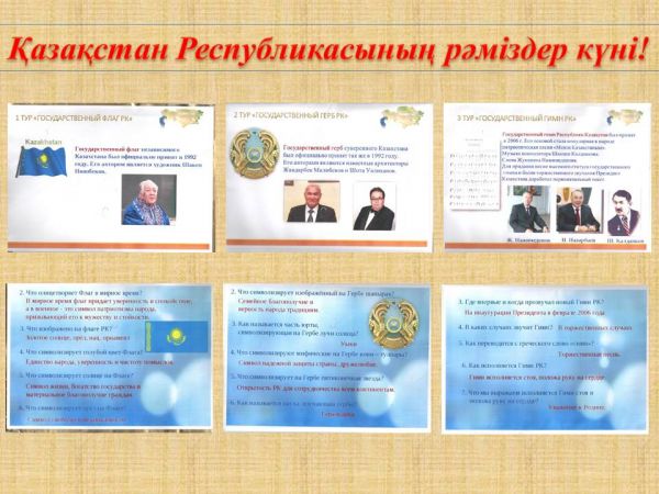 Қазақстан Республикасының рәміздер күніне орай гимназия оқушылары мен ұстаздар қауымы бірқатар іс-шаралар атқарды. Ұстаздар мемлекеттік гимнді орындай отырып, басқа мектептерге чел…