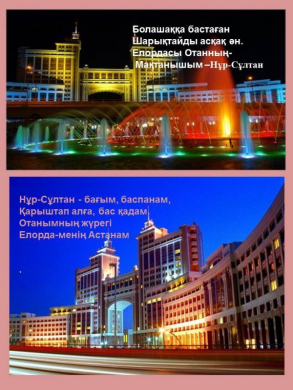 Болашаққа бастаған Шарықтайды асқақ ән. Елордасы Отанның- Мақтанышым –Нұр-Сұлтан