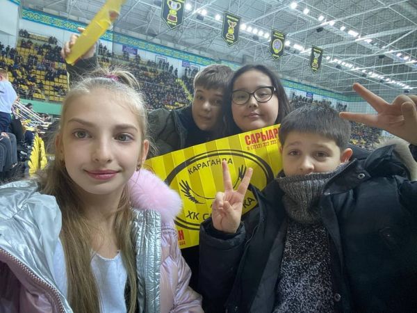 Сегодня наша хоккейная команда Сарыарка играет внедома. Ярые болельщики гимназии желают команде удачи!