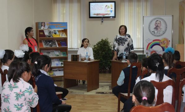 04.09.19ж. Абай атындағы Қарағанды облыстық балалар кітапханасында ұстаздар әулетінен шыққан мектебіміздің жас ұстазы Әйгерім Жақсыбекқызы және оның анасы Искакова Кульзипаның қатысуымен «Ұста…