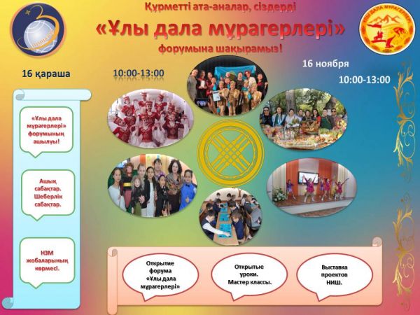 16 қараша күні сағат 10.00 - 13.00 аралығында №3 гимназияда форум өтеді. Форумға ата-аналарды, оқушыларды және ұстаздарды шақырамыз.