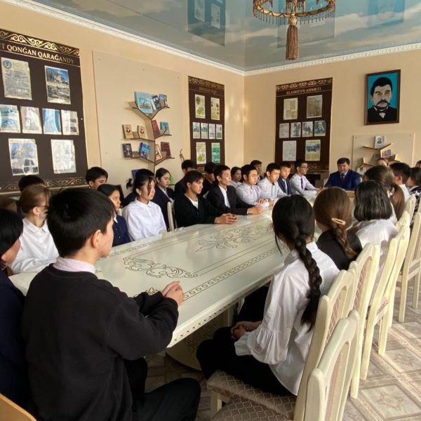 Бүгін мектебімізде 10- сынып оқушыларвы академик Е.А. Бөкетов атындағы Қарағанды университетінің тарих факультеті деканының ғылыми жұмыстар жөніндегі орынбасары, тарих магистрі, Смағұлов Нұртас Бірлікұлымен Алаш зиялыларының қоғамдық-саяси және ағартушылы