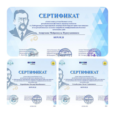 Астана қаласында өткен “Ахмет және ұлттық болмыс “ атты республикалық фестиваль аясында өткізілген “Ахмет Байтұрсынұлы мұраларының заманауи білім берудегі орны мен маңызы” атты республикалық ғылыми-тәжірибелік конференциясына белсенді қатысқан мұғалімдерд