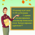 18 мамыр күні сағат 11:00-де болашақ 1 сынып оқушыларының ата-аналар жиналысы өтеді. Қатысуларыңыз сұралады!!!