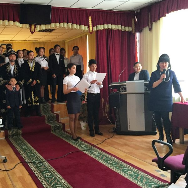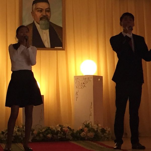 2015 жылдың 10 қазан күні №41 жалпы білім беретін орта мектебінде Абай Құнанбайұлының 170 жылдық мерейтойына арналған қазақ тілі мен әдебиеті пәні мұғалімдері М.Т.Ботаканова, Ж.Р.Тусупбе…