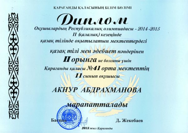 На II городском этапе Республиканской олимпиады школьников 2014-2015 учебного года с нашей школы участвовали следующие учащиеся, занявшие призовые места: