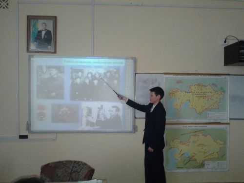 9.11.2014 күні №41 ЖББОМ-де қазақ тілі мен әдебиеті пәнінің мұғалімдері Тусупбекова Жанерке Рымбекқызы мен Сейтжанова Толғанай Ғазизқызының ұйымдастыруымен «Үш бәйтеректің» 120 жылдық ме…