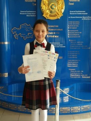 Поздравляем ученицу 6 «Ә» класса Мухамедия Инабат с победой IIОбщеказахстанской дистанционной олимпиады по музыке.