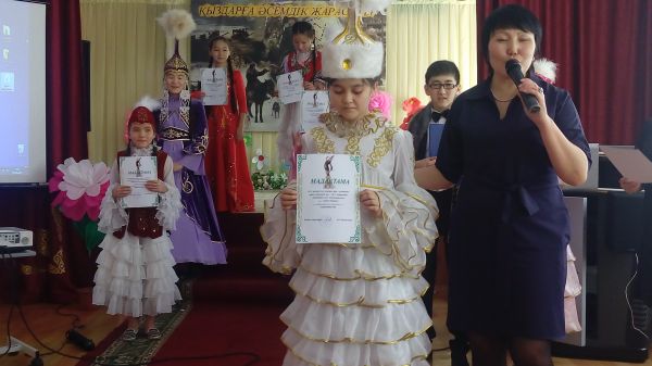 1-7 сынып оқушыларының зерттеу жұмыстары мен шығармашылық жұмыстарының «ЗЕРДЕ» республикалық конкурсының облыстық кезеңінде ІІ орынға 7 «Ә» сынып оқушысы Тойымбеков…