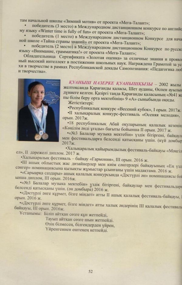 «Қабілет»республикалық ғылыми-әдістемелік орталығы еліміздің үздік мектеп оқушыларын анықтап, оларды көтермелеу, насихаттау мақсатында «Кемел елдің келешегі» атты жинаққа ену…
